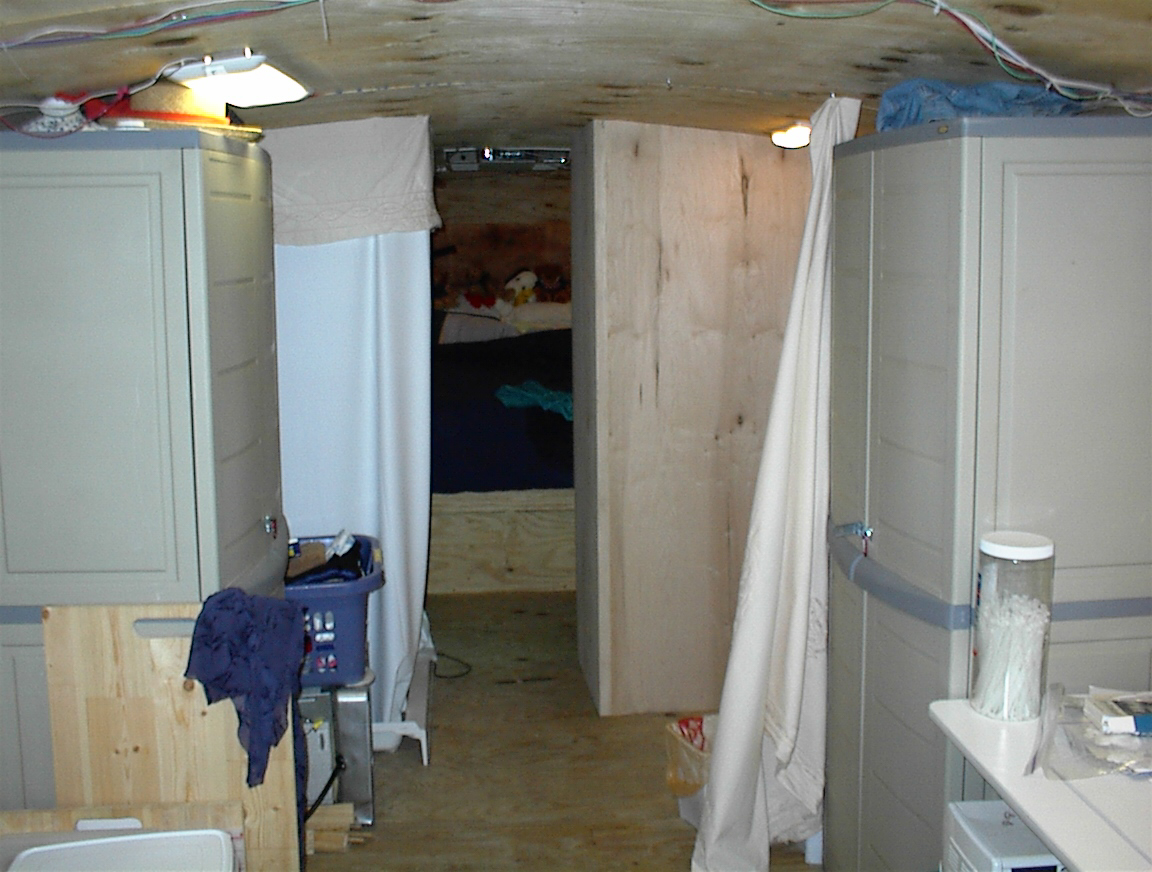 The first of our interior walls have been constructed and installed. In the photos below, you can see that Scott’s desk area has been formed inside the bedroom.